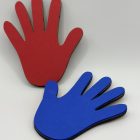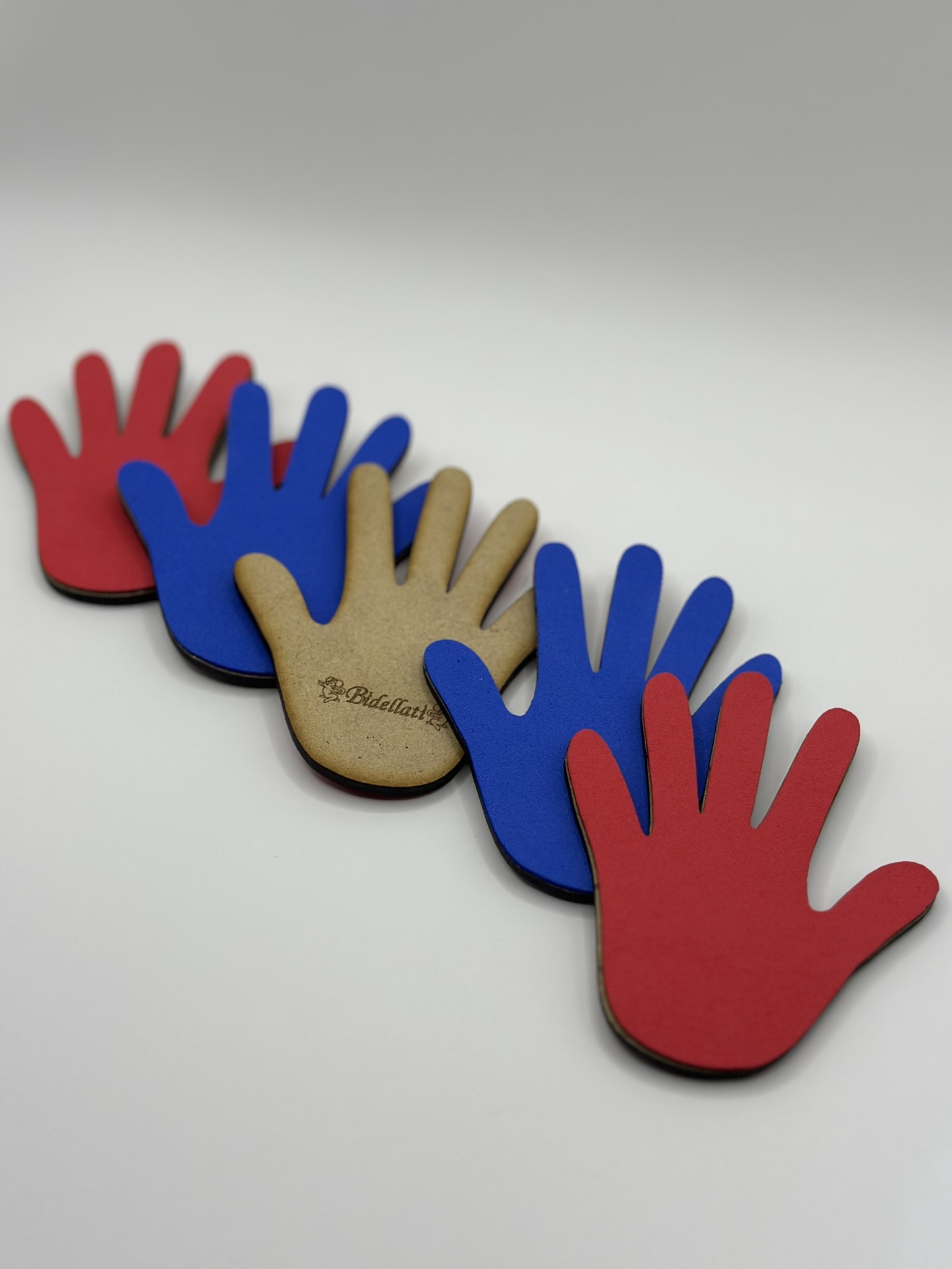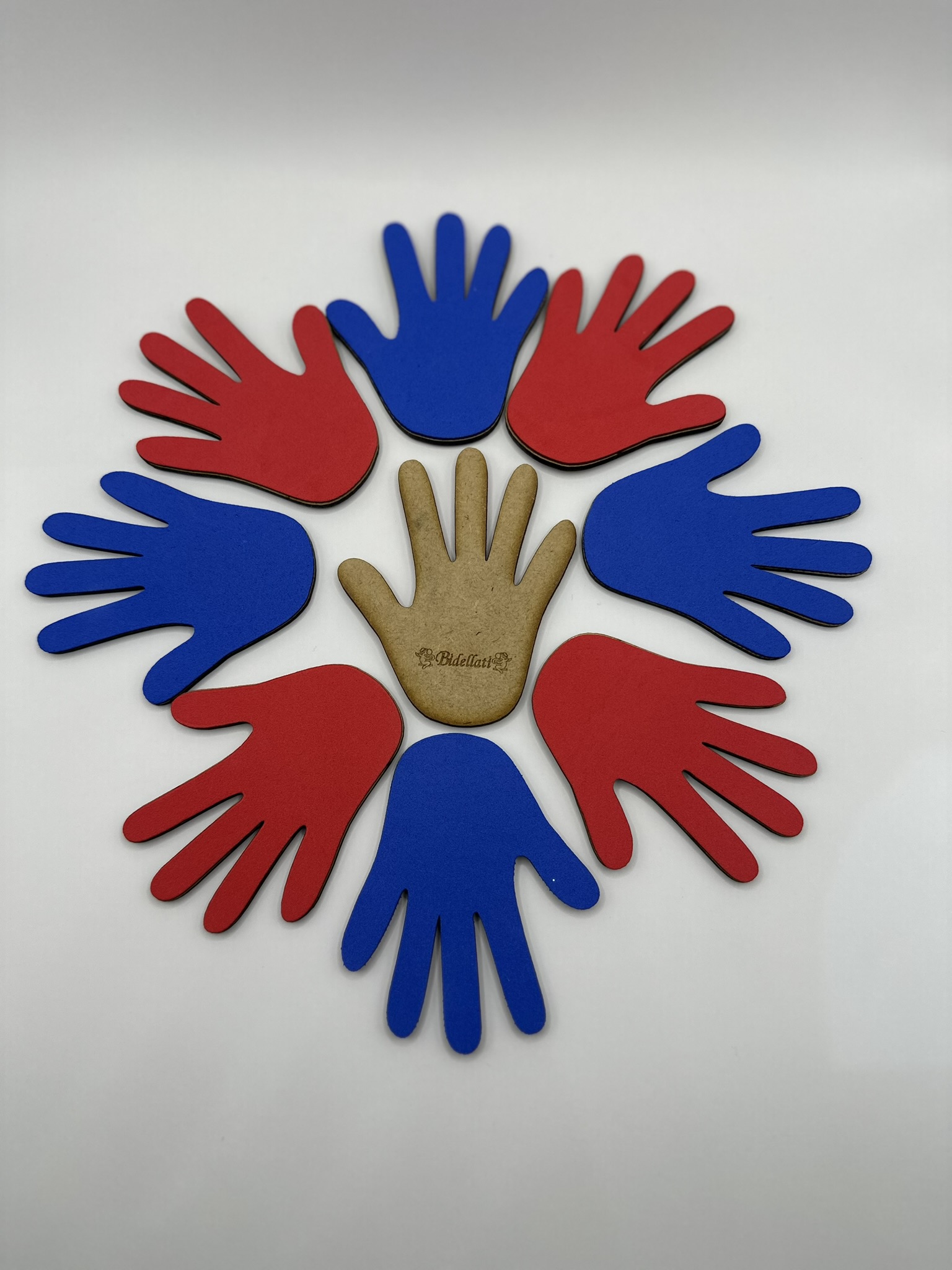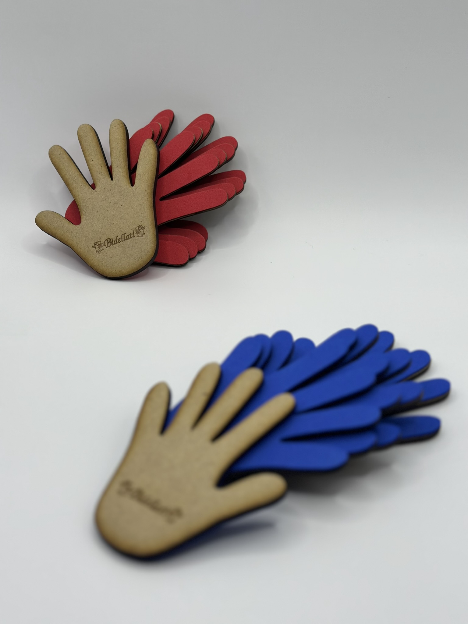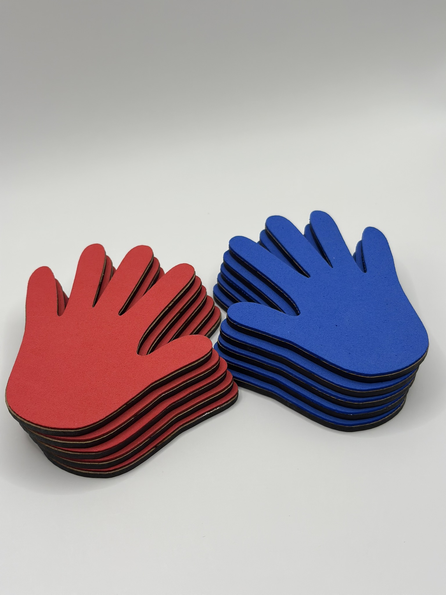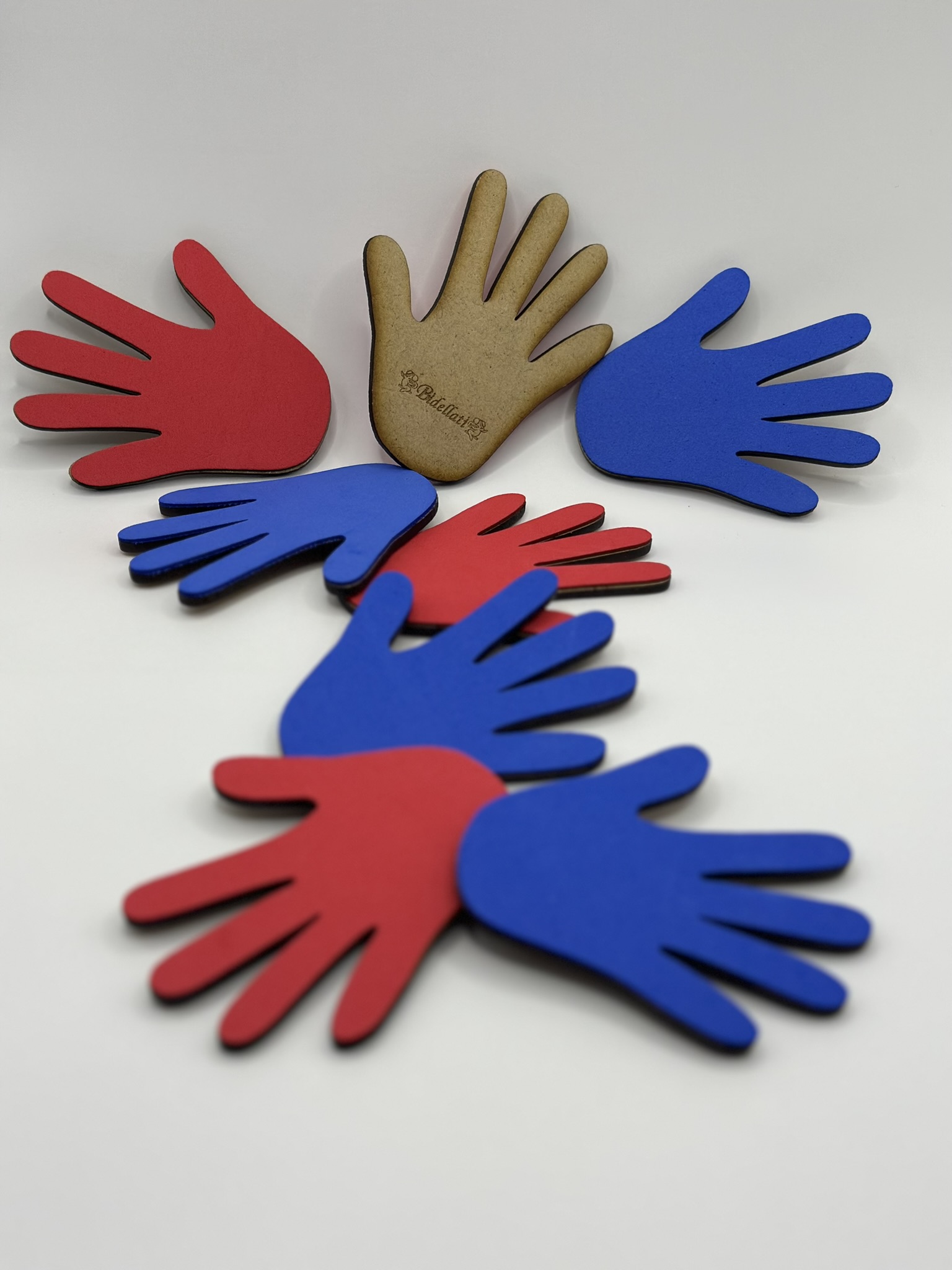 Conteúdo do kit: 5 mãozinhas vermelhas + 5 mãozinhas azuis